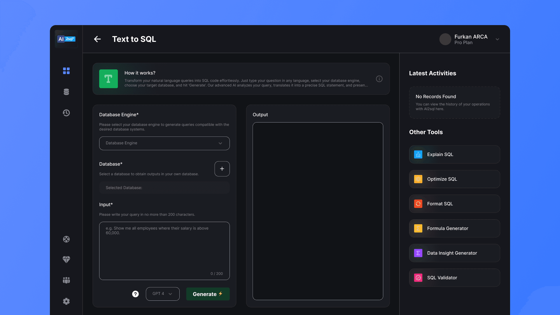 AI2SQL is an AI-powered tool that helps you generate SQL queries quickly and easily. It is powered by the ChatGPT API, which means it has access to a vast amount of data related to SQL and database management.